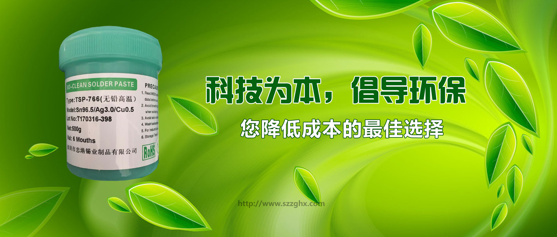 |  | 深圳市忠港錫業(yè)制品有限公司以專業(yè)生產(chǎn)、經(jīng)營各種規(guī)格和用途的無鉛焊錫,環(huán)保焊錫,焊錫絲,焊錫條,焊錫線,焊錫膏,低溫錫線,焊鋁錫絲,不銹鋼焊錫絲,無鉛錫條,無鉛錫絲,無鉛錫膏, 無鉛低溫焊錫絲,無鉛免洗助焊劑,環(huán)保助焊劑,焊鋁助焊劑,焊鋁錫條,水溶性焊錫絲,不銹鋼助焊劑等為主的電子化工輔料企業(yè)。無鉛產(chǎn)品己通過SGS檢測,并獲中國中輕產(chǎn)品[質(zhì)量、信譽雙保障示范單位]和國際ISO9001:2000質(zhì)量認證。 自成立以來,以優(yōu)良的產(chǎn)品品質(zhì)、良好的企業(yè)信譽和開拓進取的企業(yè)精神,建立了良好的社會關系。經(jīng)過多年的發(fā)展和努力,目前廣州偵探公司已經(jīng)在國內(nèi)已建立穩(wěn)固的銷售網(wǎng)絡和系統(tǒng),贏得了行業(yè)內(nèi)廣大客戶的贊譽,并倍受用戶信賴,現(xiàn)正成為珠江三角洲地區(qū)最具實力的專業(yè)焊錫條、焊錫絲、錫膏、助焊劑制造供應商之一。 |